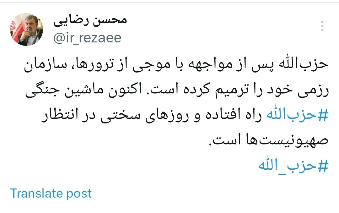 حزبالله پس از مواجهه با موجی از ترورها، سازمان رزمی خود را ترمیم کرده است. اکنون ماشین جنگی حزبالله راه افتاده و روزهای سختی در انتظار صهیونیستها است.